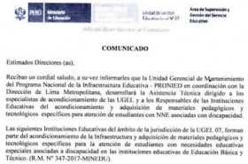 Volver a AvisosAvisosAsistencia Técnica dirigido a los especialistas de acondicionamiento de las UGEL y a los Responsables de las Instituciones Educativas.
