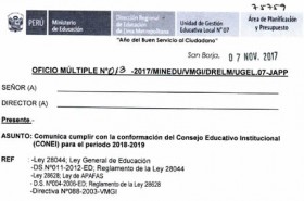 Comunica cumplir con la conformación del consejo Educativo Institucional (CONEI) para el periodo 2018-2019