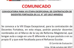 Convocatoria para VIII etapa excepcional de Contratación de Docentes Fortaleza (R.S.G. N° 107-2017-MINEDU)