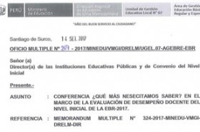 Conferencia ¿Qué más necesitamos saber? en el Marco de la Evaluación de Desempeño Docente del Nivel Inicial de la EBR-2017.