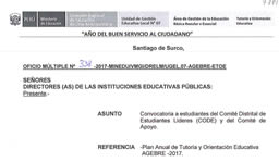 Convocatoria a estudiantes del Comité Distrital de Estudiantes Líderes (CODE) y del Comité de Apoyo.