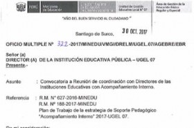 Convocatoria a Reunión de coordinación con Directores de las Instituciones Educativas con Acompañamiento Interno