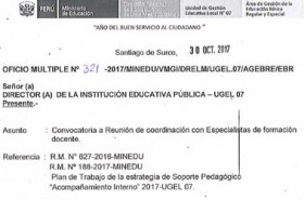 Convocatoria a Reunión de coordinación con Especialistas de formación docente.