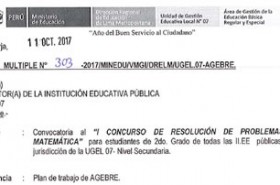 Convocatoria al “I CONCURSO DE RESOLUCIÓN DE PROBLEMAS DE MATEMÁTICA” para estudiantes de 2do. Grado de todas las II.EE públicas de la jurisdicción de la UGEL 07-Nivel Secundaria.