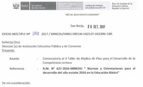 Volver a Avisos AvisosConvocatoria al II Taller de Réplica de Plan para el Desarrollo de la Competencia Lectora.
