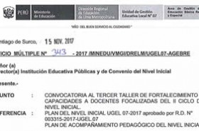 Convocatoria al Tercer Taller de Fortalecimiento de Capacidades a Docentes Focalizadas del II Ciclo del Nivel Inicial