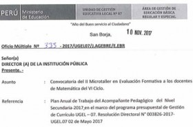 Convocatoria del II Microtaller en Evaluación Formativa a los docentes de Matemática del VI CICLO.