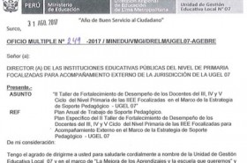 Volver a AvisosAvisosII Taller de Fortalecimiento de Desempeño de los Docentes del III, IV y V Ciclo del Nivel Primaria de las IIEE Focalizadas en el Marco de la Estrategia de Soporte Pedagógico- UGEL07