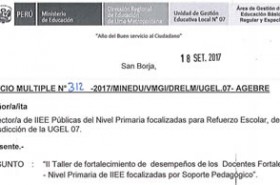 II Taller de fortalecimiento de desempeño de los Docentes Fortaleza – Nivel Primaria de IIEE focalizadas por Soporte Pedagógico