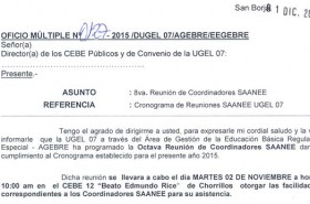 Informamos a los sres. directores de los CEBE Públicos y de Convenio de nuestra jurisdicción que, el Área de AGEBRE ha programado la 8va Reunión de Coordinadores SAANEE a realizarse el día miércoles 02 de diciembre  a horas 10:00am. en el CEBE 12 «Beato Edmundo Rice» del distrito de Chorrillos, a la cual se invita a los Coordinadores SAANEE para su asistencia.