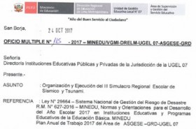 Organización y Ejecución del III Simulacro Regional Escolar de Sismo y Tsunami