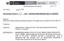 Volver a Avisos AvisosOrganización y Ejecución del IV Simulacro Nacional Escolar de Sismo y Tsunami