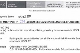 Volver a Avisos AvisosParticipación en actividades por el día Nacional del Ahorro de Energía a nivel de la UGEL 07