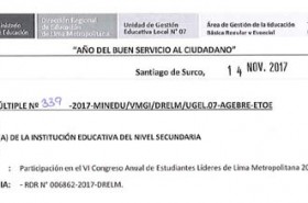 Volver a Avisos AvisosParticipación en el VI Congreso de Estudiantes Líderes de Lima Metropolitana 2017