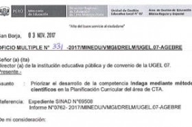 Volver a Avisos AvisosPriorizar el desarrollo de la competencia Indaga mediante métodos científicos en la Planificación Curricular del área de CTA