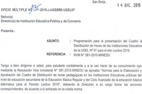 Programación para la presentación del Cuadro de Distribución de Horas de las Instituciones Educativas de la UGEL 07 para el año Lectivo 2016