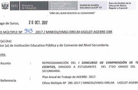 Reprogramación del I CONCURSO DE COMPRESIÓN DE TEXTOS ESCRITOS, dirigido a estudiantes del 2°do grado del nivel de secundaria.