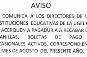 Volver a Avisos AvisosSe comunica a los Directores de las II.EE de la UGEL0 07, acercarse a pagaduría