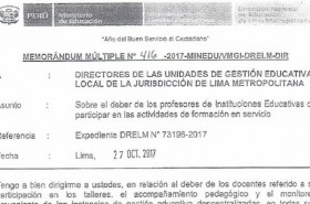 Volver a Avisos AvisosSobre el deber de los profesores de Instituciones Educativas de participar en las actividades de formación en servicio