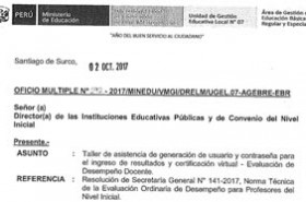 Taller de asistencia de generación de usuario y contraseña para el ingreso de resultados y certificación virtual – Evaluación de Desempeño Docente.