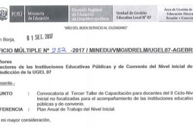 Tercer Taller de Capacitación para docentes del II Ciclo – Nivel Inicial no focalizadas para el acompañamiento de las instituciones educativas públicas y de convenio