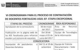 VI Cronograma para el proceso de Contratación de Docentes Fortalezas UGEL 07 – ETAPA EXCEPCIONAL