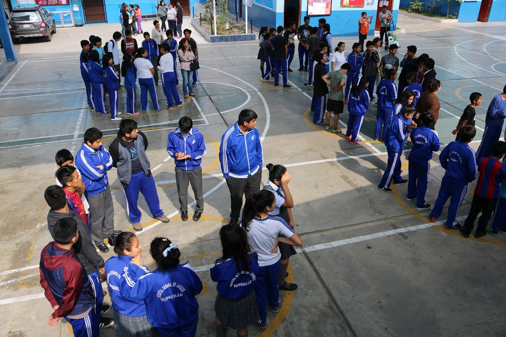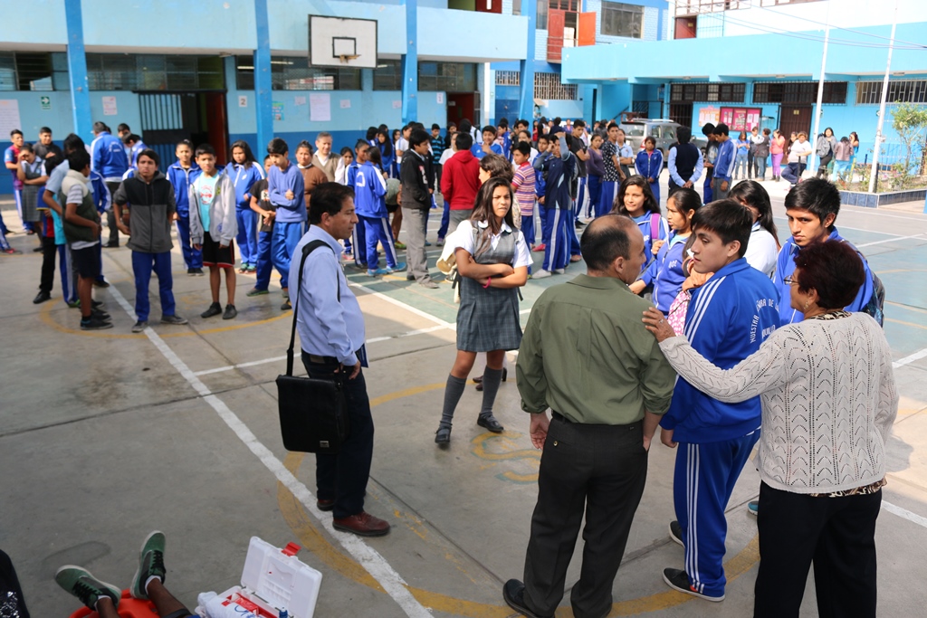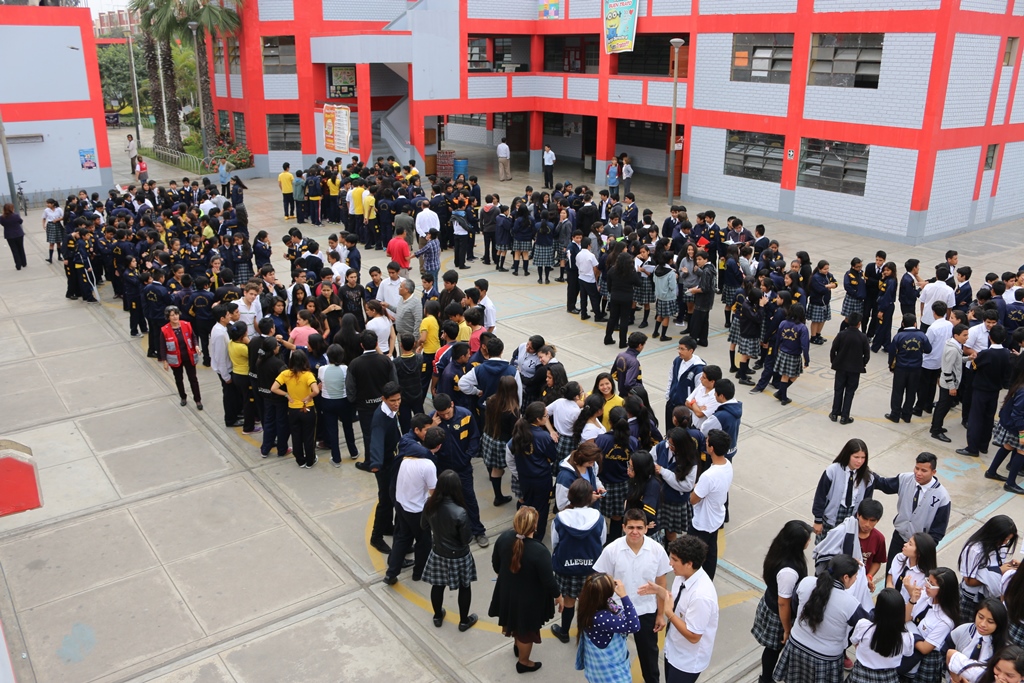 Cumpliendo con la disposición del Ministerio de Educación (MINEDU), los estudiantes de las II.EE cumplieron con eficacia y en tiempos adecuados las evacuaciones de las aulas, para ubicarse en las zonas seguras ante algún desastre natural.