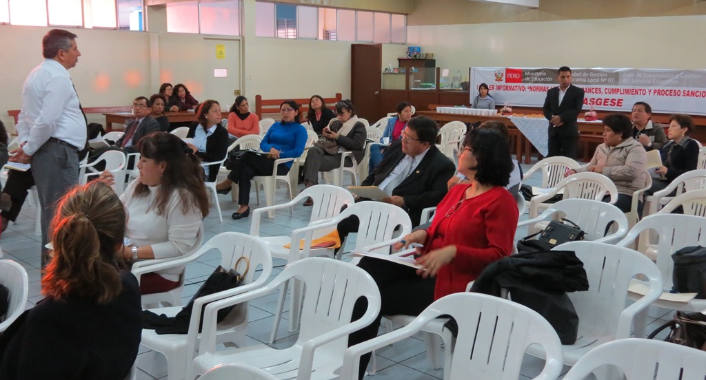 Con éxito concluyó el I Taller Informativo: “Normas Legales, Alcances, Cumplimiento y Proceso Sancionador”, organizado por el Área de Supervisión y Gestión del Servicio Educativo (ASGESE) de la Unidad de Gestión Educativa Local N° 07 (UGEL 07).