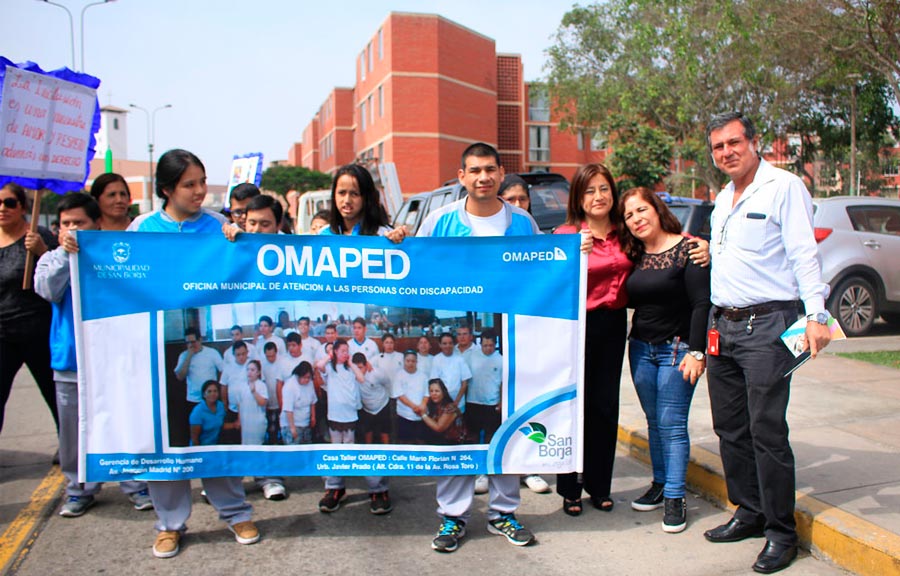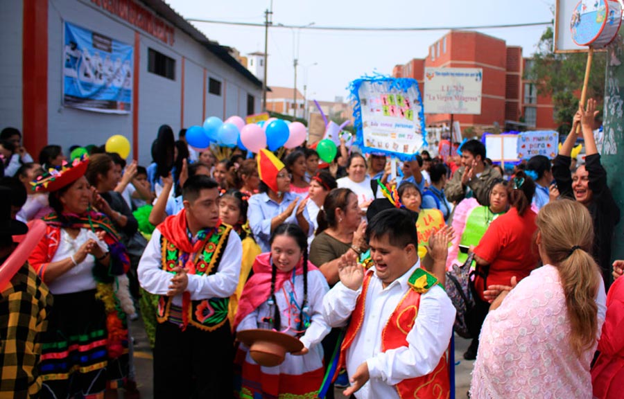 En esta ocasión, fue el turno de San Borja, donde la II.EE. María Auxiliadora y el Instituto Para Niños Excepcionales – IPNE realizaron un pasacalle, que durante su paso por la Sede de la UGEL 07, fue recibida por la Directora Gloría María Saldaña Usco, quien alentó los esfuerzos de docentes y padres de familia.