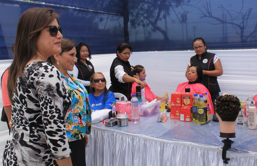 La directora de la UGEL 07, Gloria Saldaña Usco, recorrió en compañía de la jefa de AGEBATP, Sara Herrera Montero, cada stand de los CETPROS los trabajos realizados con mucha dedicación.