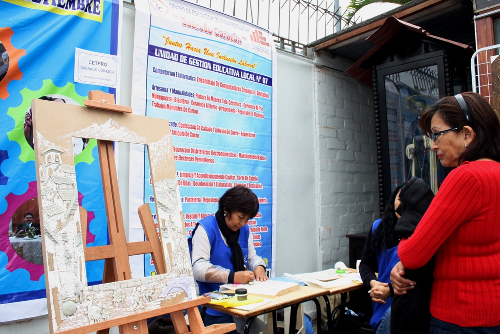 Finalmente, alumnas del Cetpro “Sagrado Corazón” de Chorrillos demostraron su habilidad en la elaboración de productos en temas de artesanía y manualidades.