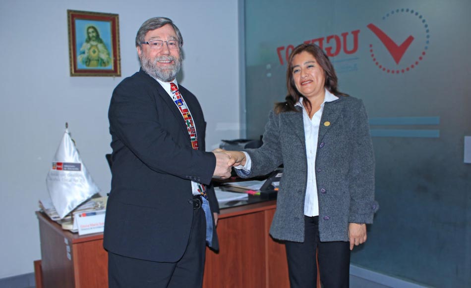 Estos fueron los primeros acuerdos alcanzados en la reunión protocolar entre el Director de la II.EE. International Christian School John Havill y la Directora de la UGEL N° 07 Gloria María Saldaña Usco.