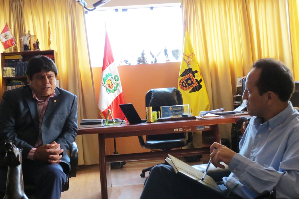 Luis Quintanilla Gutiérrez, director de la Unidad de Gestión Educativa Local N° 07, y José Luis Huamaní Gonzales, Alcalde del distrito de Surquillo, tuvieron la primera reunión de coordinación acerca del I Convenio de “Cooperación interinstitucional” entre ambos organismos.