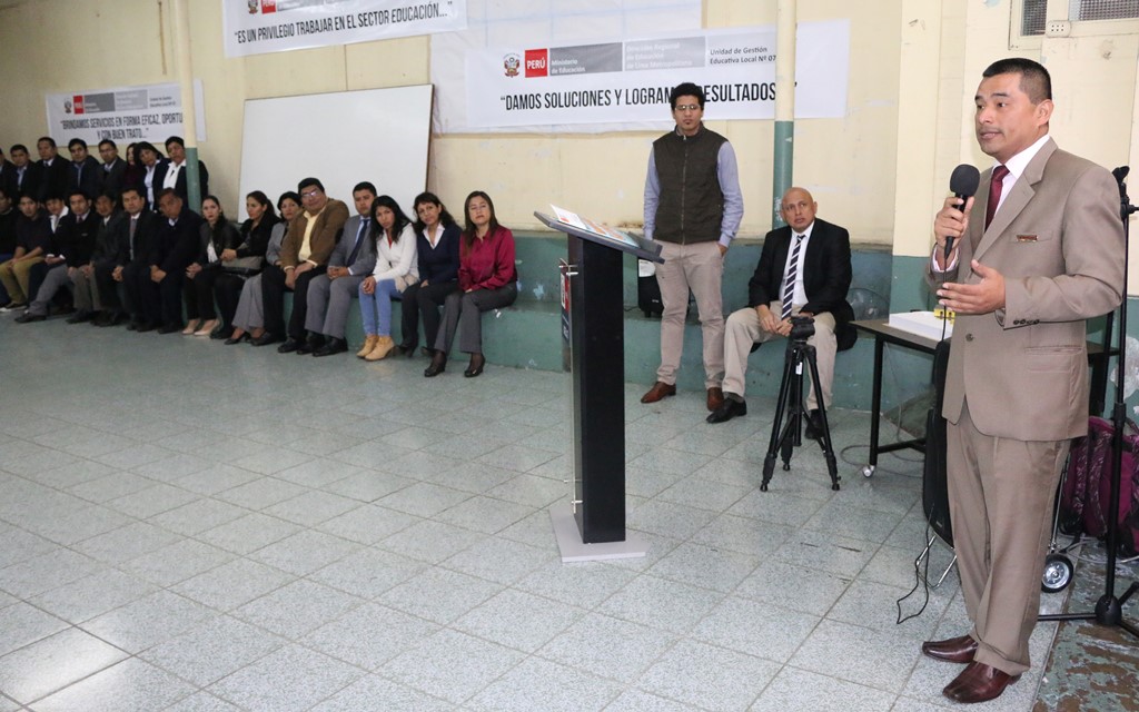 “Todos tenemos que tener claro hacia dónde vamos. Nosotros tenemos que mejorar en todo sentido, en el lado administrativo, pero sobre todo en el tema educativo. Como Ugel debemos de dotar de soporte pedagógico al sistema educativo para alcanzar logros de aprendizajes y que nuestras escuelas den un servicio educativo de calidad”.