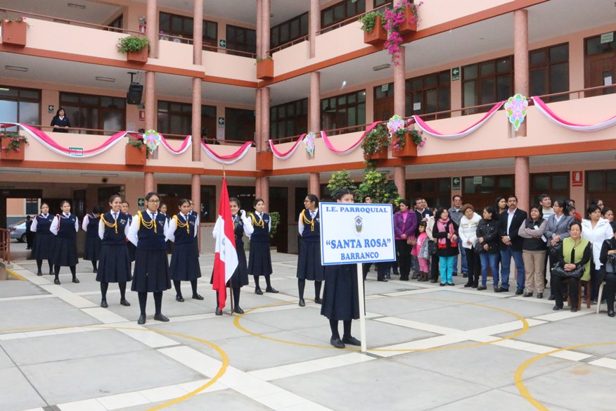 La Institución Educativa 6094 Santa Rosa de Chorrillos y el Colegio Parroquial Santa Rosa de Barranco se encuentran de aniversario y ambas realizaron una gran ceremonia en el patio de sus respectivas escuelas, donde se pudo observar el entusiasmo, cariño y alegría que se vive en una fecha tan especial para los docentes, estudiantes y padres de familia.