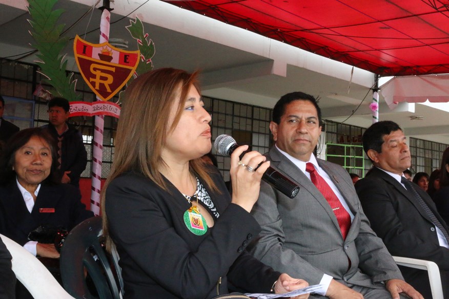 Por su parte, la directora de la UGEL 07, Gloria María Saldaña Usco, agradeció a la institución educativa 6094 Santa Rosa de Chorrillos por la invitación, y felicitó los logros obtenidos. Indicó que “la educación no solo se logra con infraestructura, es importante sí, pero lo más importante es la pasión y dedicación con la que debemos brindar los conocimientos y habilidades a nuestros estudiantes, para que puedan desarrollar sus mejores competencias y ser los primeros a nivel internacional en todos los campos, es por ello que debemos de trabajar en conjunto”.