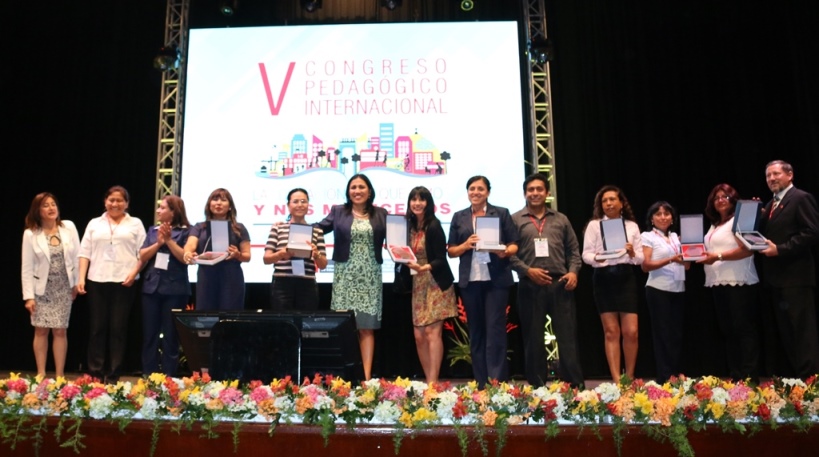 Docentes de la UGEL 07 fueron reconocidas en el V Congreso Pedagógico Internacional, donde fueron premiados frente a un millar de asistentes las nueve innovadoras metodologías y estrategias pedagógicas que han sido implementadas por iniciativa de los maestros de la UGEL 07. La ceremonia se realizó con la presencia de la directora de regional de educación de Lima Metropolitana, Flor Pablo Medina, quien indicó que este tipo de acciones son las que marcan la diferencia en la educación. La iniciativa, esfuerzo y creatividad de los maestros está llevando a los estudiantes a una educación integral que engloba la parte afectiva y pedagógica, y que siempre deberían ir de la mano en la formación de los ciudadanos que estamos formando en las escuelas.