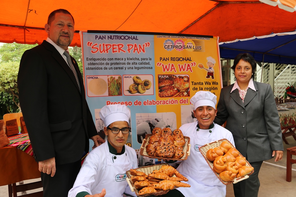 Los estudiantes bajo el liderazgo del director del CETPRO, Walter Terán Reátegui y el asesoramiento de la maestra Cecilia López Ascarza, lograron este reconocimiento luego de presentarse a este concurso con un pan nutricional denominado “Súper Pan” y un pan regional llamado “Tanta Wa Wa”, enriquecido con maca y kiwicha, para la obtención de proteínas de alta calidad, obtenidos de un cereal y una leguminosa.