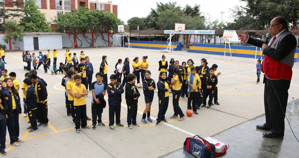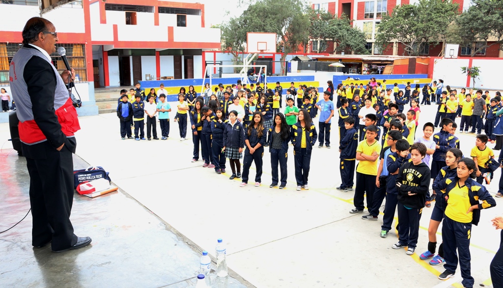 El jefe de AGEBATP que estuvo acompañado por el Jefe de Asesoría Jurídica de la UGEL 07, Jorge Manrique Campomanes, alentó a los estudiantes a seguir ensayando estos simulacros debido a que este se realizó en un tiempo no adecuado para una evacuación.