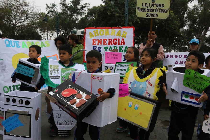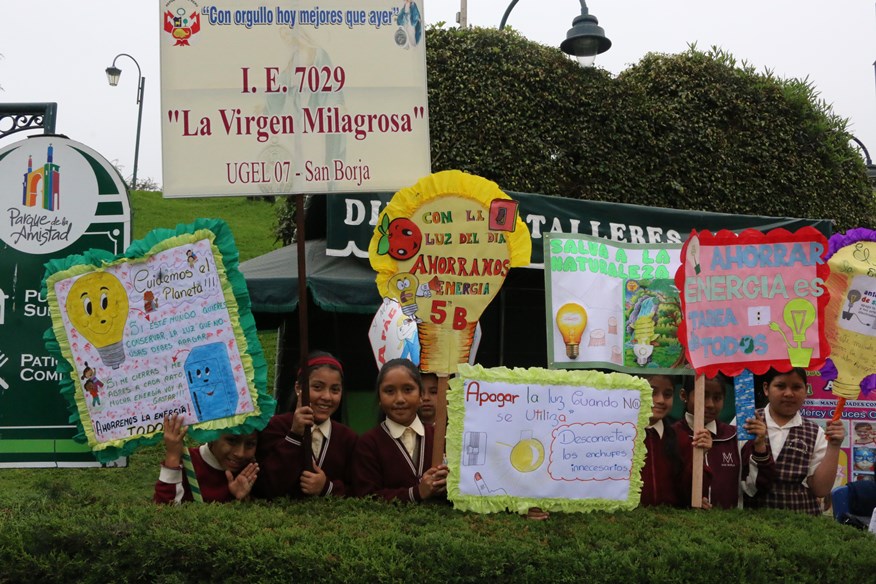 Estudiantes de la UGEL 07 participan de la Celebración por el día Nacional del Ahorro de Energía, que tiene como finalidad promover el desarrollo de capacidades en relación al uso eficiente de la energía y cuidado del medio ambiente en los estudiantes.