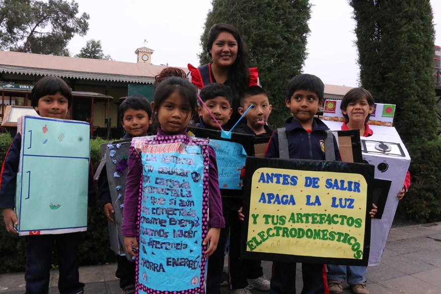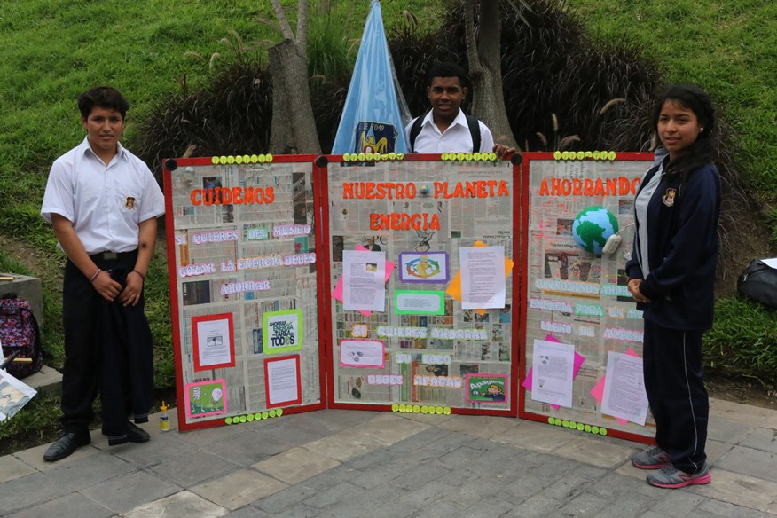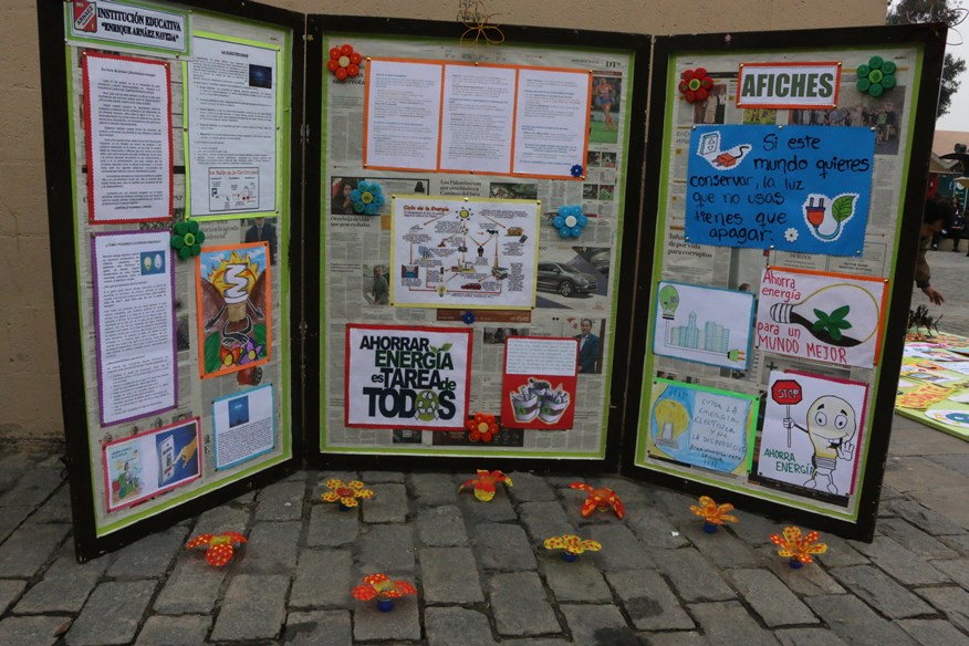 La intervención de los alumnos de inicial y primaria se realizó con creativos disfraces y pancartas alusivas, con frases como “Para vivir mañana con alegría, ahorra energía”, “luz que no usamos, luz que apagamos”, lemas que motivan el uso responsable de la energía, asimismo los estudiantes del nivel secundario participaron con la presentación de periódicos murales.