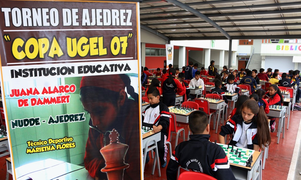 Con gran entusiasmo más de 150 estudiantes de diferentes instituciones educativas públicas de la Unidad de Gestión Educativa Local N° 07 (UGEL 07) participaron del primer torneo de Ajedrez realizado en la IEE “Juan Alarco de Dammert”, ubicado en el distrito de Miraflores.