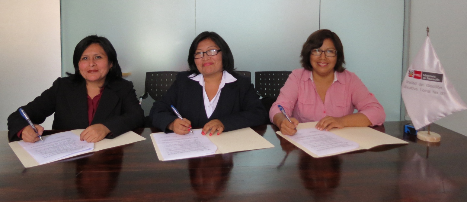 El convenio fue firmado por la directora Gilma Luciano Alleca del CETPRO “San Francisco de Borja” y las directoras de CEBA, Geovanna Paredes Oré y María Huamaní Quispe. El acto protocolar estuvo presidido por el jefe del Área de Gestión de la Educación Básica Alternativa y Técnico Productiva (AGEBATP), Régulo Alarcón Velazco.