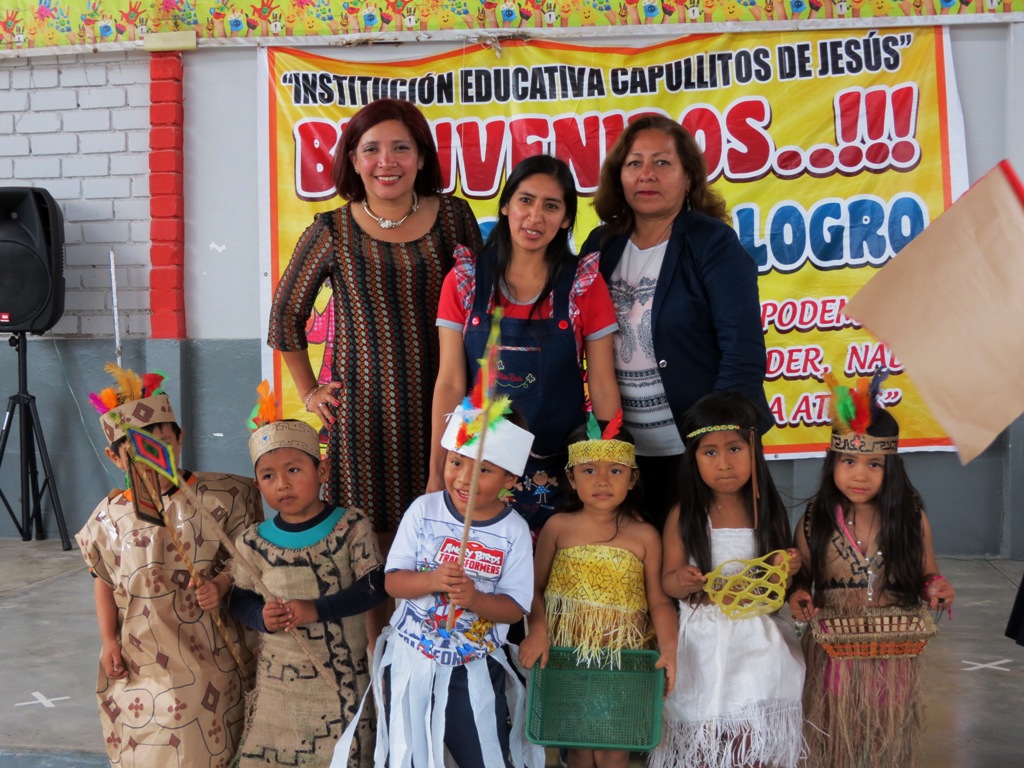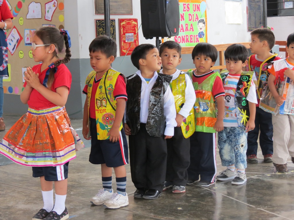 Los más pequeños bailaron danzas de nuestro país, como es el caso de la marinera, Huaylas y un ritmo de la selva, todos ellos con atuendos reciclados. Signo de enseñanza para que los más pequeños cuiden la naturaleza y el planeta.