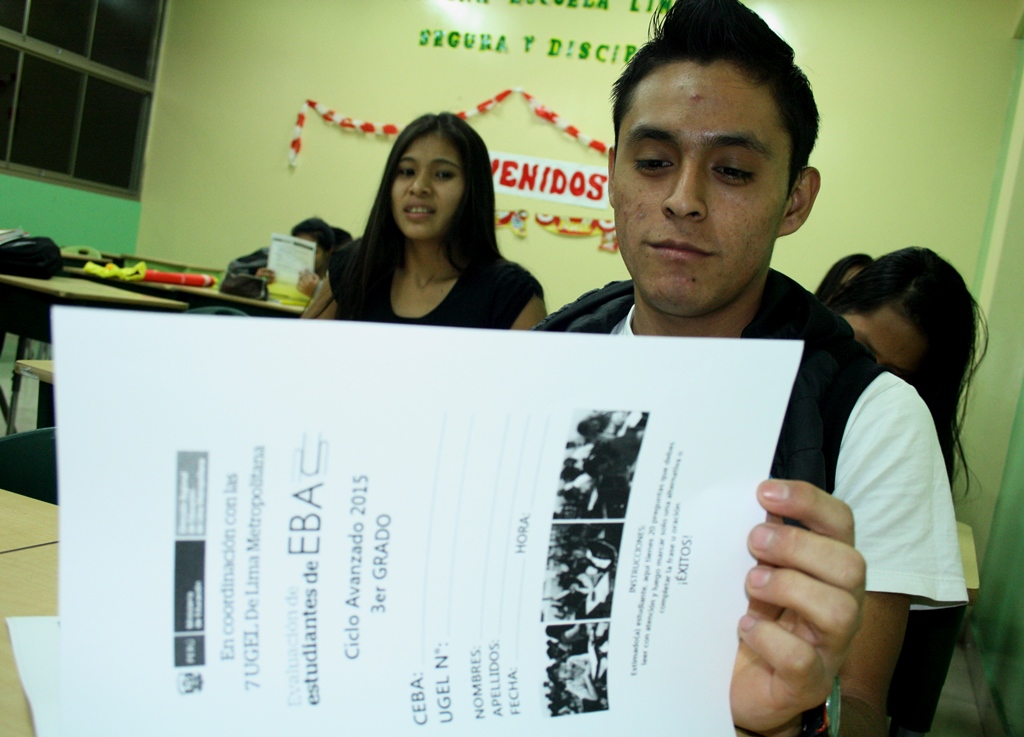 Los estudiantes de ciclos intermedio y avanzado de la modalidad de Educación Básica Alternativa (EBA) rindieron la primera evaluación de aprendizaje estandarizada programada por la Dirección Regional de Educación de Lima Metropolitana en coordinación con la Unidad de gestión Educativa Local N° 07 (UGEL 07).