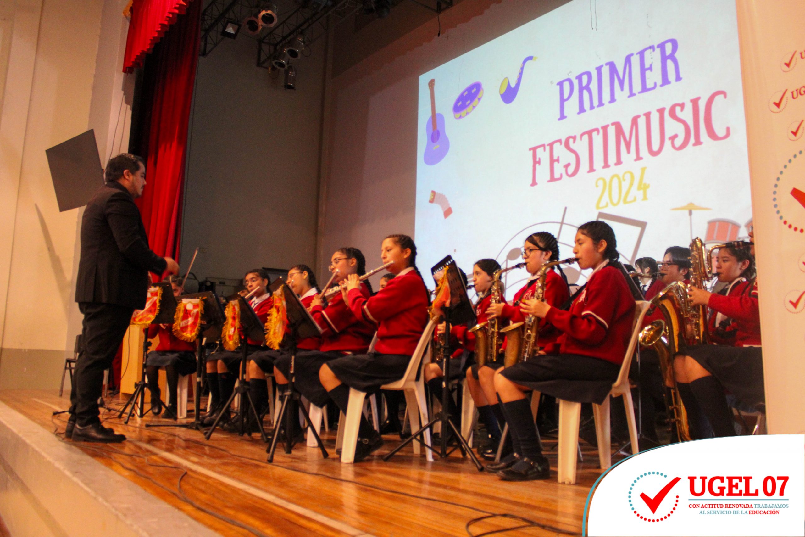 La UGEL 07, a través del Área de Gestión de la Educación Básica Regular y Especial (AGEBRE), celebró el lanzamiento del primer FestiMusic 2024, un festival que reunió a estudiantes talentosos de distintas instituciones educativas para dar vida a un evento cargado de música, arte y energía juvenil. Este emocionante encuentro se realizó con la participación de 12 instituciones educativas, quienes presentaron a sus mejores bandas en un espectáculo musical.