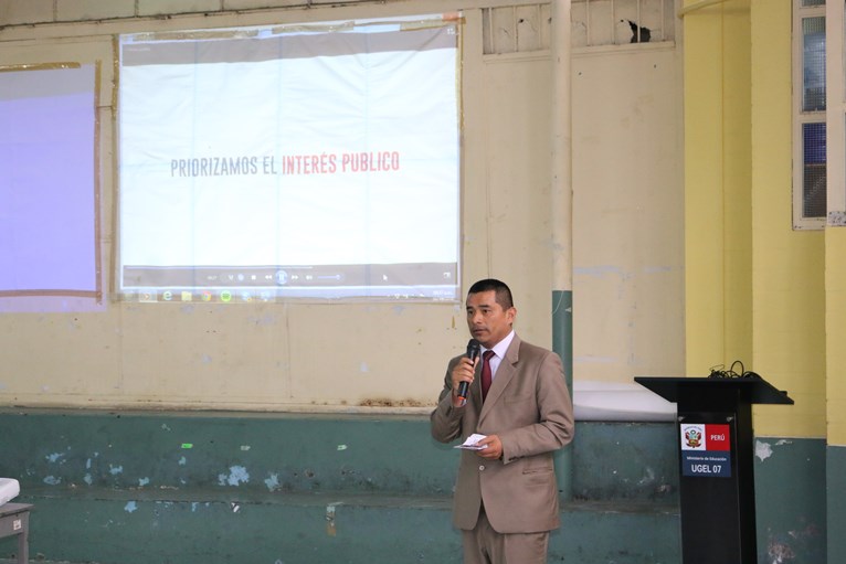 En la segunda parte de la jornada, José Luis Manrique y Edgar Puma, jefes de las áreas de Asesoría Jurídica y de Planificación y Presupuesto, hicieron mención a las actitudes y comportamientos que los inspira como servidores, tales como el priorizar el interés ciudadano y agregar valor público al conjunto de los servicios que brinda la UGEL 07 a docentes, administrativos, auxiliares y alumnos de instituciones educativas públicas y privadas bajo su jurisdicción.