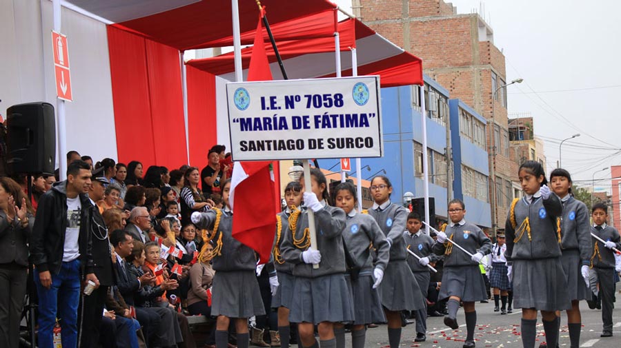 Los valores patrióticos forman parte del proceso educativo, es por ello y como parte de los actos oficiales de la «Ceremonia de Jura de fidelidad a la Bandera Nacional» las Instituciones Educativas públicas y privadas del Distrito de Surco participaron de esta importante fecha.