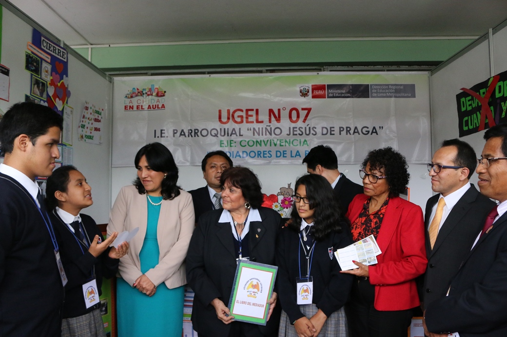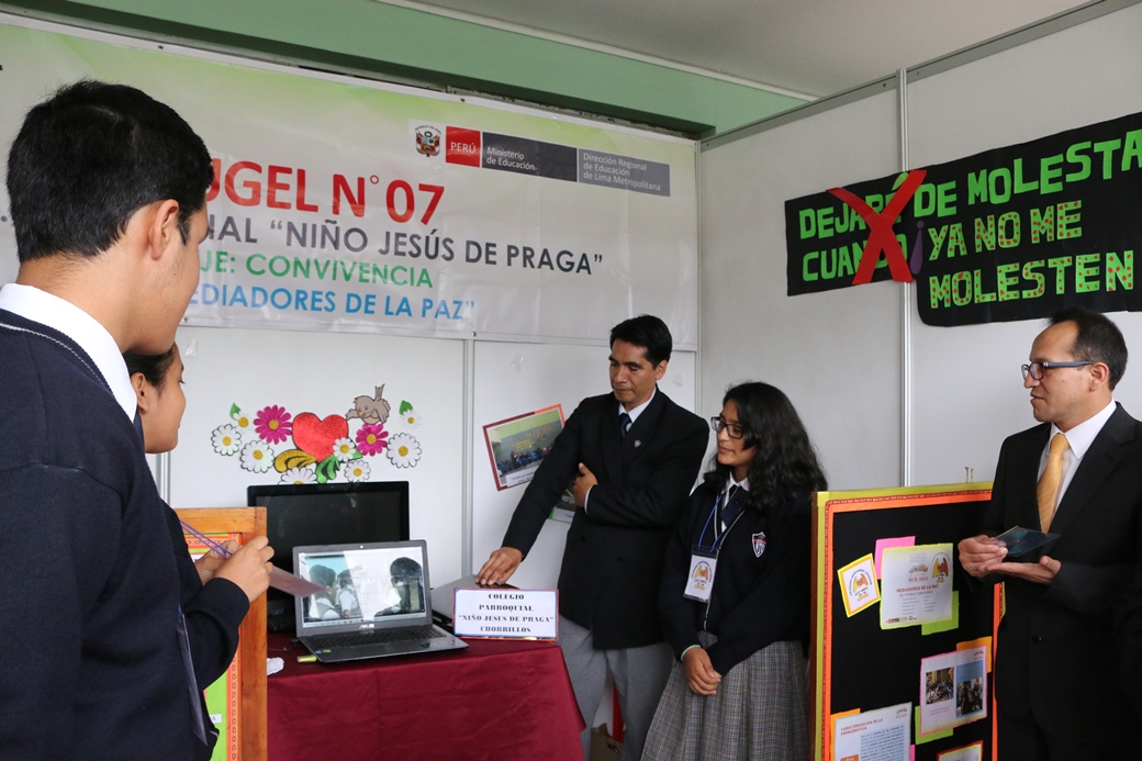 De otro lado, los estudiantes de la I.E. Parroquial Niño Jesús de Praga expusieron a los visitantes sobre la Buena Práctica Docente denominado “Mediadores de la Paz”. Tema que tiene como finalidad concientizar y promover a la comunidad educativa un buen desarrollo de relaciones humanas de igualdad, para fortalecer la autoestima y la defensa de los derechos de los estudiantes.
