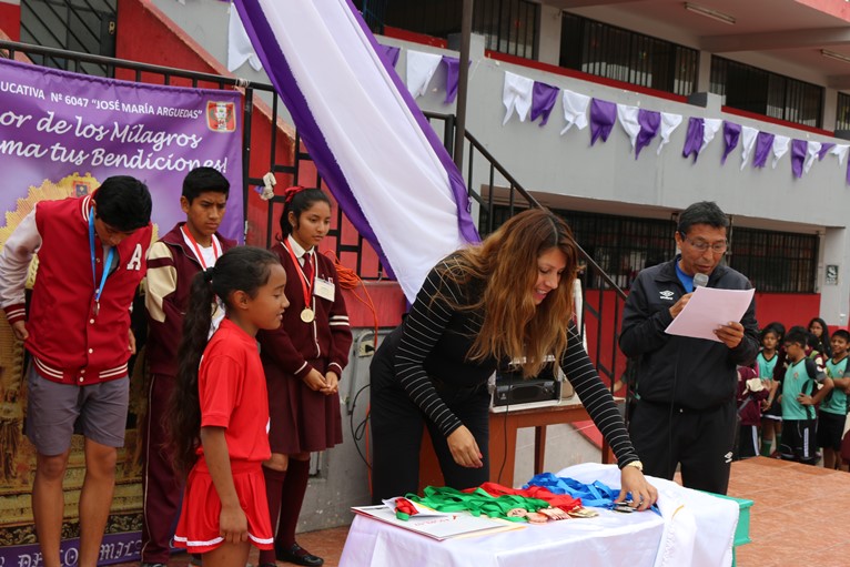 Estudiantes de la Institución Educativa José María Arguedas fueron reconocidos por su participación en los Juegos Deportivos Nacionales 2016 donde se hicieron ganadores con medallas de oro, plata y bronce en distintas categorías, entre varones y damas. La ceremonia se realizó en la patio de la escuela y contó con la presencia de la Marilú Zarate Solano, jefa del Área de Gestión de la Educación Básica Regular y Especial, quien manifestó que es un orgullo contar con estudiantes con grandes talentos y habilidades deportivas, que nos representarán a nivel nacional, porque sabemos que este colegio es cuna de deportistas y atletas.